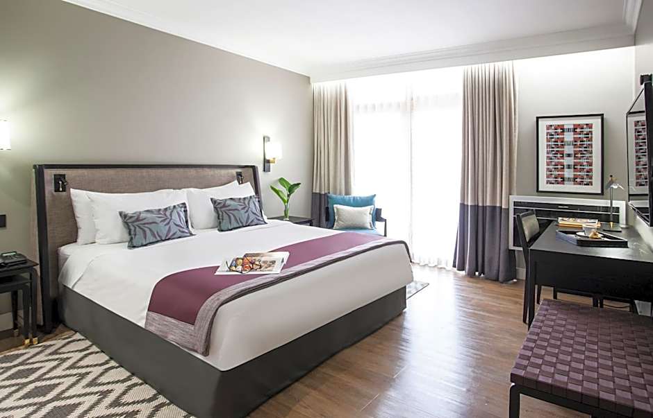 With the benefit of a stocked mini bar this spacious, air-conditioned suite features a seating and dining area, and comes equipped with a flat-screen satellite TV, desk, safe and tea-and-coffee-making facilities.